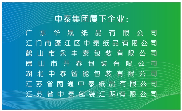 中泰集团总部位于广东省江门,全国有6家分厂,拥有25年的纸板包装行业经验、实力雄 厚。属下无锡江阴分厂即将投产!
